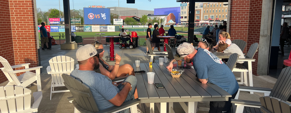 The facility also features an outdoor patio set down the left field line, tier-lawn seating, and table tops on the concourse to enjoy food and drink while watching the game. The press box itself is not directly behind home plate but pushed down the third base side; this gives fans in the Reinhart Club seating a panoramic view of the diamond.