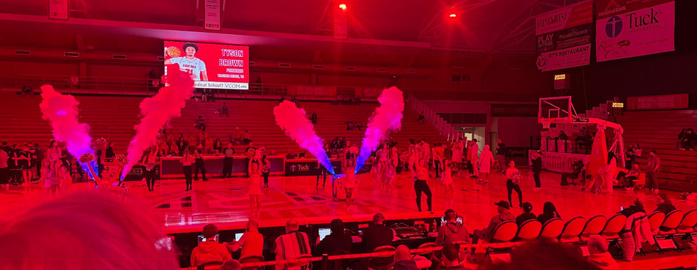 Before the game, the main lights in the arena go out, and red lights come on in reference to Radford's school colors. The Highlanders' starting lineup is then introduced as pillars of smoke shoot out from the court. With such an impressive start, you would expect the rest of the experience to be equally impressive. Unfortunately, it is not.