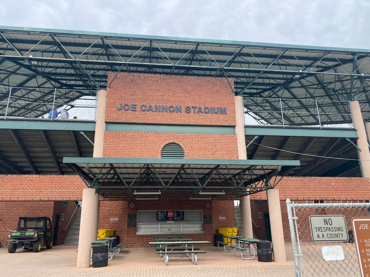 When Joe Cannon Stadium was opened in 1990, the area was not very developed. Since then, this area has been the center of rapid growth and development. The large Arundel Mills Mall and Maryland Live Casino are nearly across the street from the stadium. BWI Airport is also located nearby, and the sight of airplanes taking off is not uncommon.