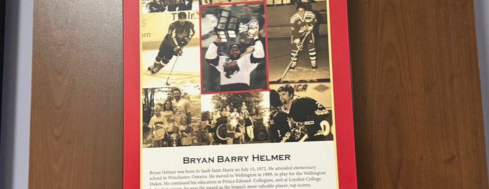 They are flanked by a number of Division and Conference Championship banners. Minor hockey banners hang on the south wall along with displays showing the history of the Duke of Wellington and the Village of Wellington. The north side features several trophy cases displaying artifacts from various levels of hockey, including the Dukes, and a mini-stick arena is in the upper southwest corner, to keep the younger, more rambunctious fans safe and engaged. Wellington’s favourite hockey son, former professional hockey player and AHL Hall of Fame member, Bryan Helmer, has his number 44 retired and hanging in the southeast corner.