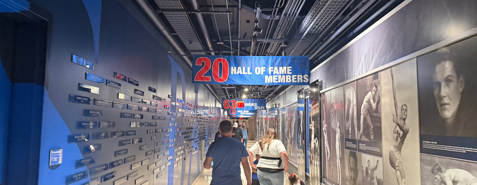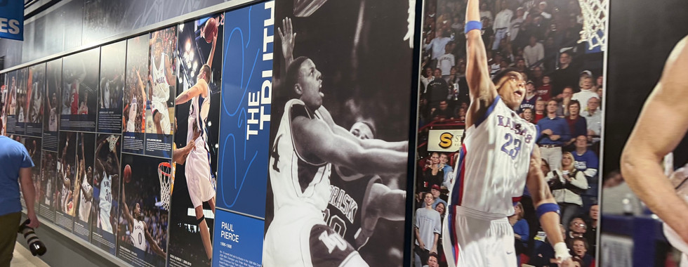 So many things decorate the stadium and add to the experience, including the host of championship banners, retired numbers, and recognized players. The staff is friendly and helpful, you can find multiple places to buy team merchandise, and even a few kids' activities are present. In fact, there’s a whole hallway filled with player photos and team accomplishment banners. All this, and yet the most impressive part is far and away the Booth Family Hall of Athletics that serves as a hall of fame for Kansas athletes and sports, including a special emphasis on James Naismith, the inventor of basketball and KU’s first basketball coach, and Forrest C. “Phog” Allen.