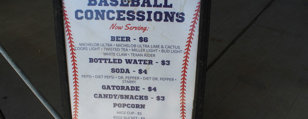 Concessions here are limited, with only a folding table set up under the stands. Drinks offered are Pepsi products plus Dr Pepper, but note there is no Mountain Dew – Starry is the only citrus-based option. Beer, Gatorade, and bottled water are also available, with alcohol options including popular domestics such as Michelob Ultra, Coors Light, Miller Lite, and Bud Light. White Claw, Twisted Tea, and regional craft favorite Revolver’s Texan Rider, which is branded specifically for Tarleton athletics, are also available.